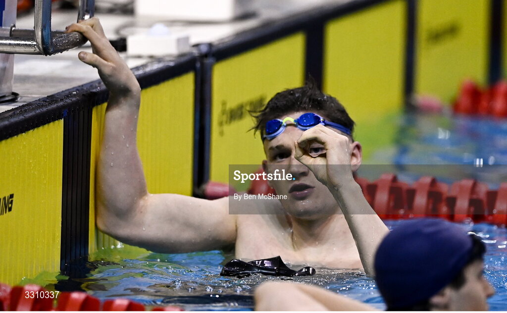 14 December 2025; John Shortt celebrates after winning the Men's 50m freestyle final during day three of the Irish Winter Swimming Championships 2025 at the National Aquatic Centre on the Sport Ireland Campus in Dublin. Photo by Ben McShane/Sportsfile