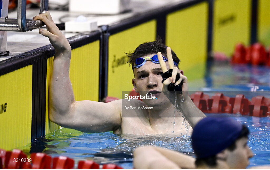 14 December 2025; John Shortt celebrates after winning the Men's 50m freestyle final during day three of the Irish Winter Swimming Championships 2025 at the National Aquatic Centre on the Sport Ireland Campus in Dublin. Photo by Ben McShane/Sportsfile