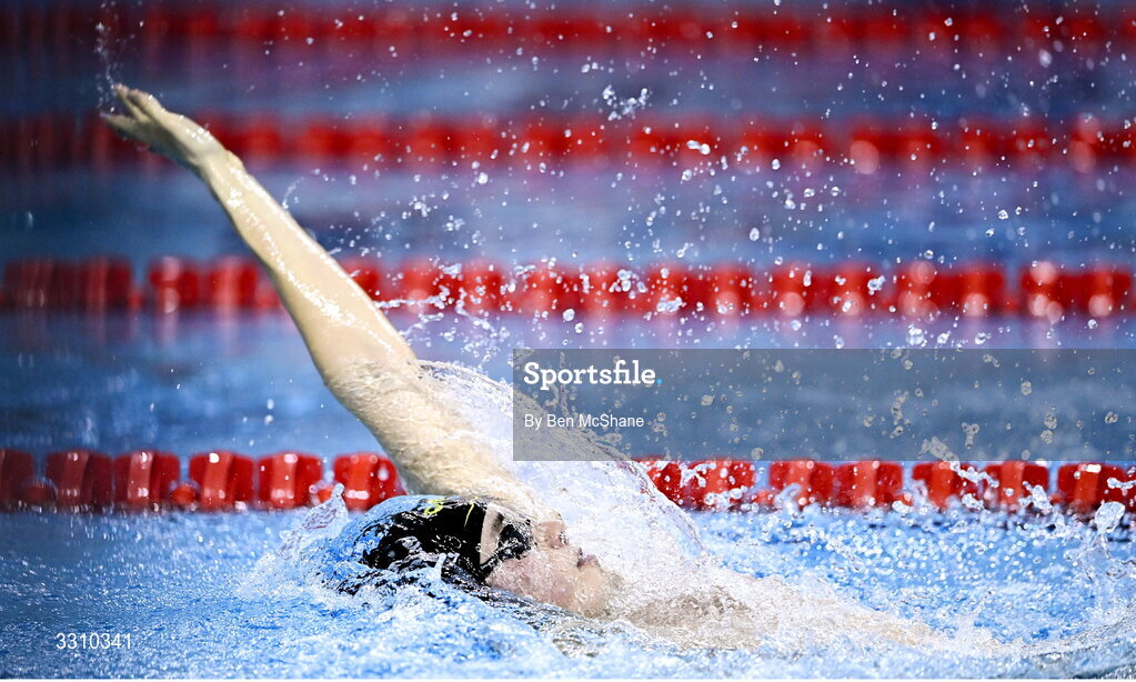 14 December 2025; Neddie Irwin competes in the Men's 200m Backstroke final during day three of the Irish Winter Swimming Championships 2025 at the National Aquatic Centre on the Sport Ireland Campus in Dublin. Photo by Ben McShane/Sportsfile