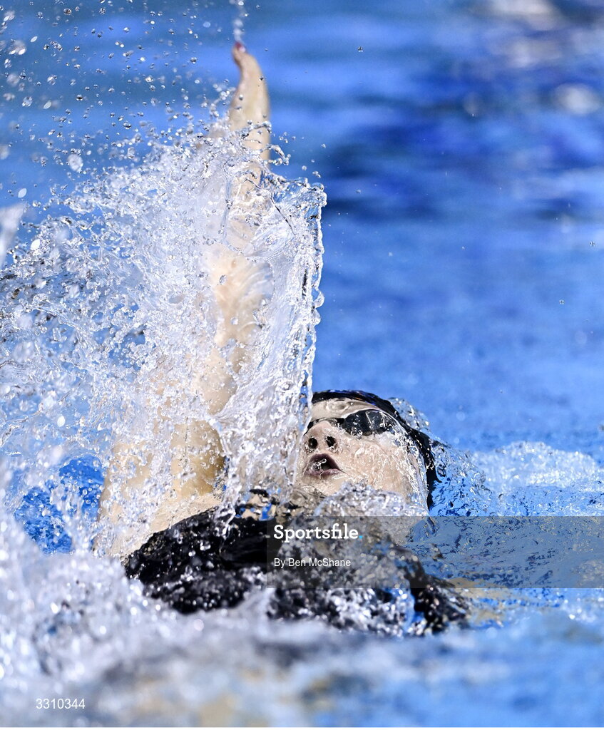 14 December 2025; Grace Davidson in the Women's 200m Backstroke during day three of the Irish Winter Swimming Championships 2025 at the National Aquatic Centre on the Sport Ireland Campus in Dublin. Photo by Ben McShane/Sportsfile