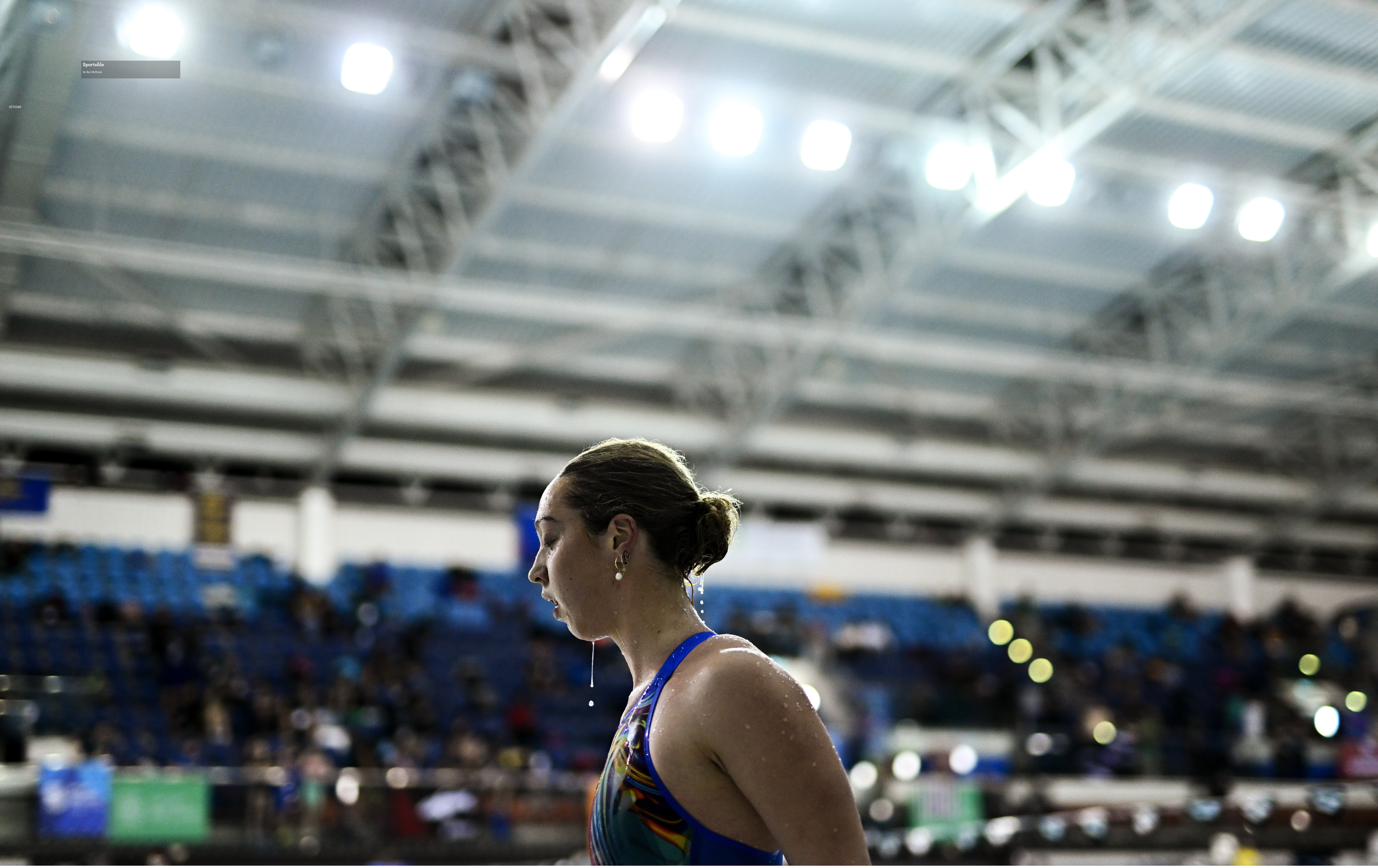 14 December 2025; Cora Rooney after competing in the Women's 200m Backstroke during day three of the Irish Winter Swimming Championships 2025 at the National Aquatic Centre on the Sport Ireland Campus in Dublin. Photo by Ben McShane/Sportsfile