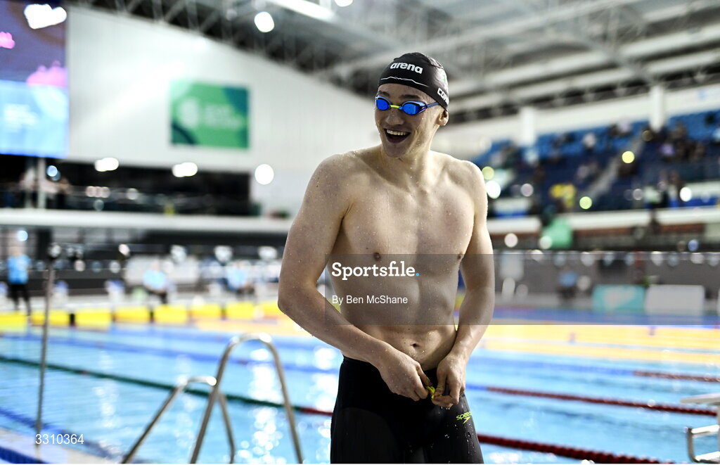 14 December 2025; John Shortt after winning the Men's 100m Individual Medley during day three of the Irish Winter Swimming Championships 2025 at the National Aquatic Centre on the Sport Ireland Campus in Dublin. Photo by Ben McShane/Sportsfile