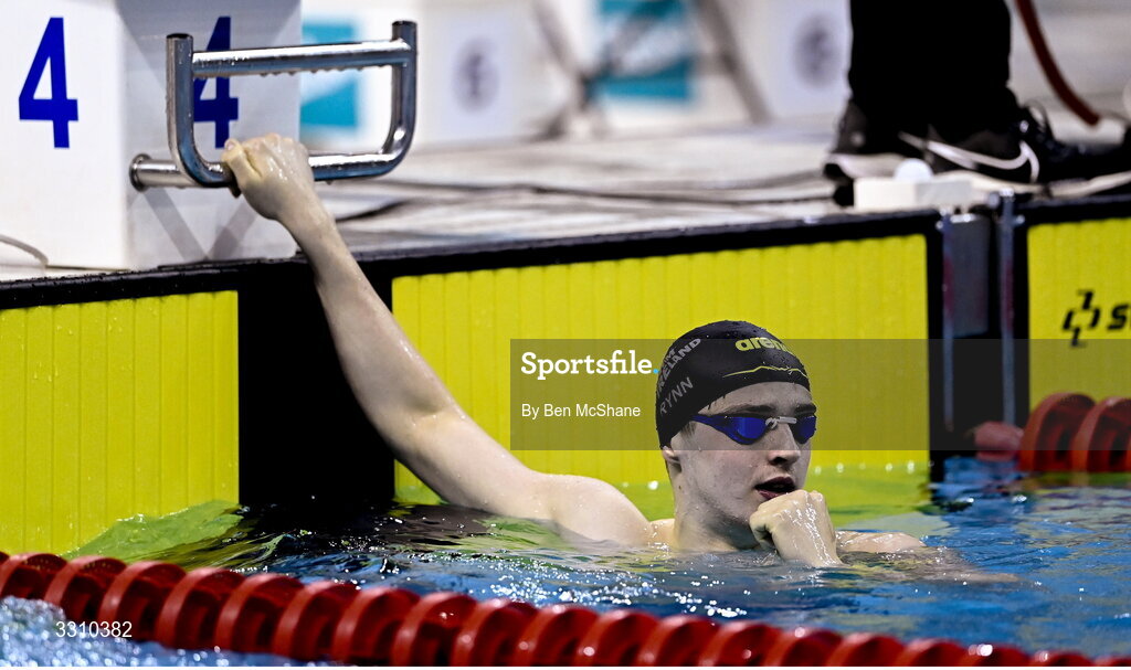 14 December 2025; Cormac Rynn after winning in the Men's 400m Freestyle during day three of the Irish Winter Swimming Championships 2025 at the National Aquatic Centre on the Sport Ireland Campus in Dublin. Photo by Ben McShane/Sportsfile