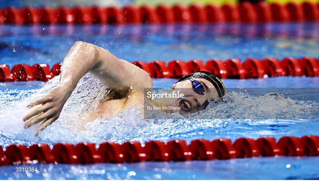 14 December 2025; Cormac Rynn competes in the Men's 400m Freestyle during day three of the Irish Winter Swimming Championships 2025 at the National Aquatic Centre on the Sport Ireland Campus in Dublin. Photo by Ben McShane/Sportsfile