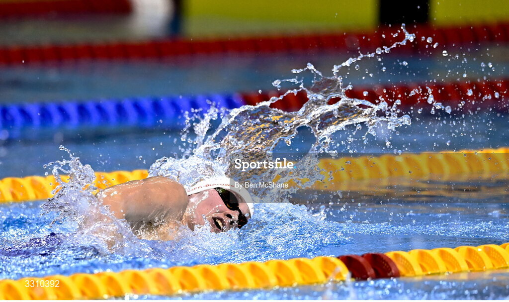14 December 2025; Skye Austin-Burrows competes in the Women's 400m Freestyle during day three of the Irish Winter Swimming Championships 2025 at the National Aquatic Centre on the Sport Ireland Campus in Dublin. Photo by Ben McShane/Sportsfile