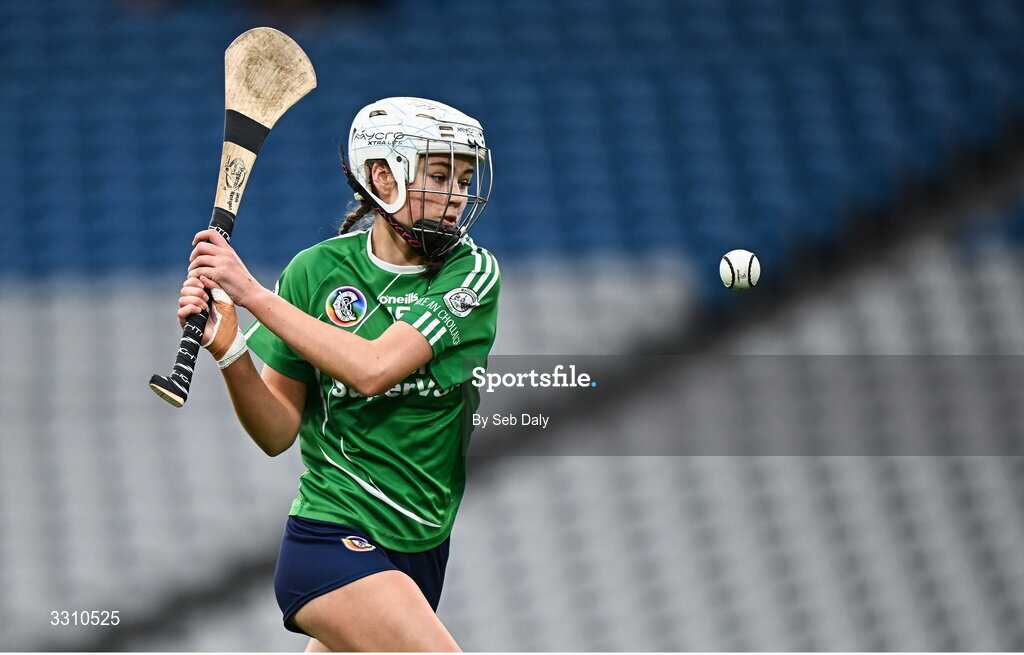 14 December 2025; Leah Hannigan of Ballincollig during the AIB All-Ireland Camogie Intermediate Club Championship final match between Ballincollig of Cork and Camross of Laois at Croke Park in Dublin. Photo by Seb Daly/Sportsfile