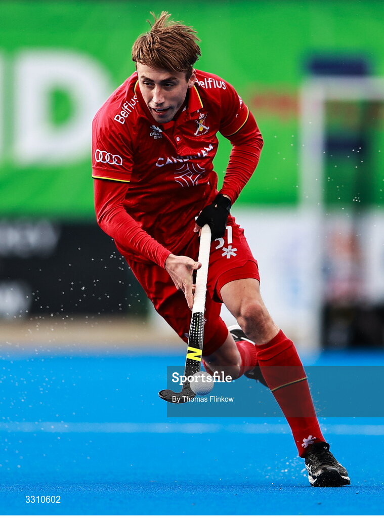 14 December 2025; Thomas Crols of Belgium during the FIH Men's Hockey Pro League match between England and Belgium at the Sport Ireland Campus in Dublin. Photo by Thomas Flinkow/Sportsfile
