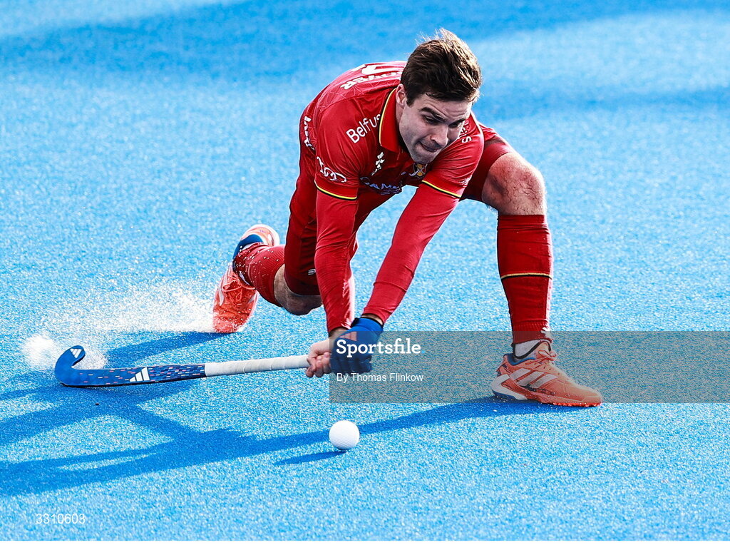 14 December 2025; Arthur de Sloover of Belgium during the FIH Men's Hockey Pro League match between England and Belgium at the Sport Ireland Campus in Dublin. Photo by Thomas Flinkow/Sportsfile
