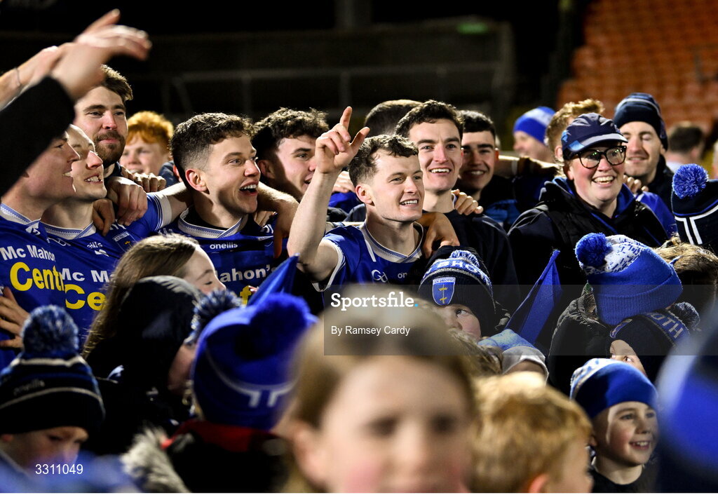 13 December 2025; Scotstown players, including Darragh Murray, celebrate after the AIB Ulster GAA Football Senior Club Championship final match between Kilcoo and Scotstown at BOX-IT Athletic Grounds in Armagh. Photo by Ramsey Cardy/Sportsfile