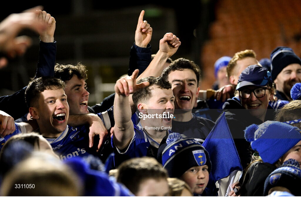 13 December 2025; Scotstown players, including Darragh Murray, centre, celebrate after the AIB Ulster GAA Football Senior Club Championship final match between Kilcoo and Scotstown at BOX-IT Athletic Grounds in Armagh. Photo by Ramsey Cardy/Sportsfile