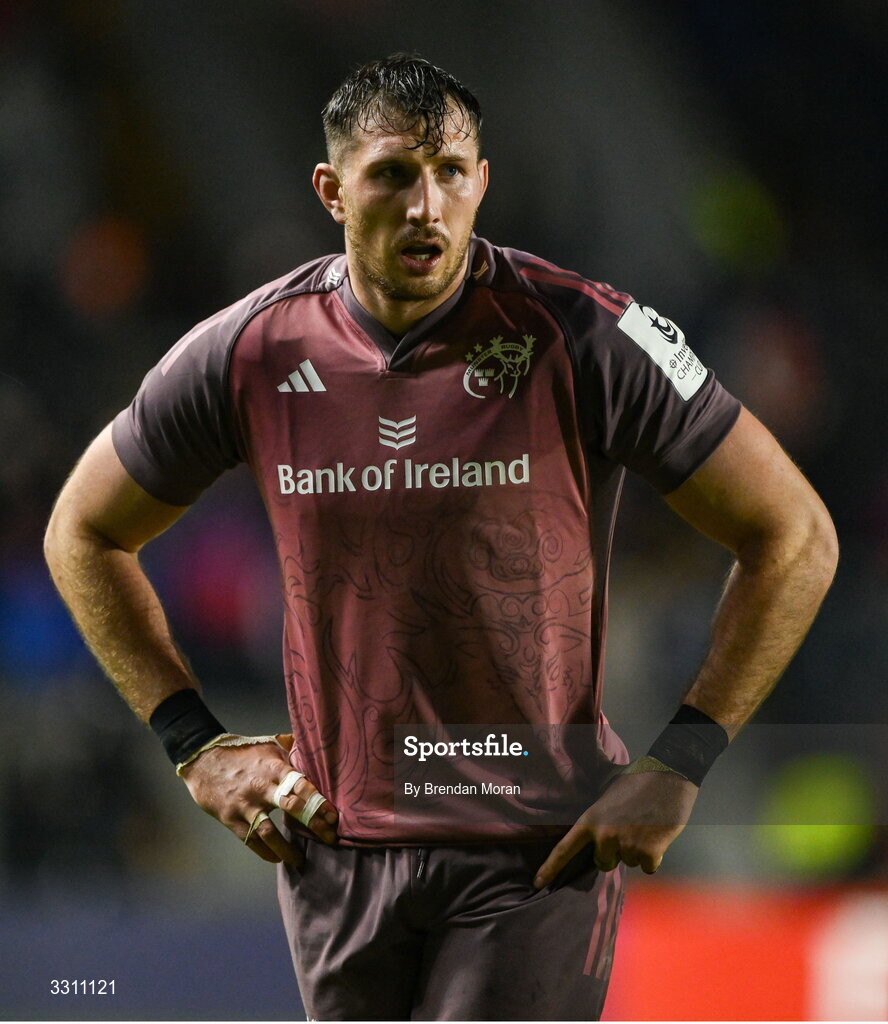 13 December 2025; Tom Ahern of Munster during the Investec Champions Cup match between Munster and Gloucester at SuperValu Páirc Ui Chaoimh in Cork. Photo by Brendan Moran/Sportsfile
