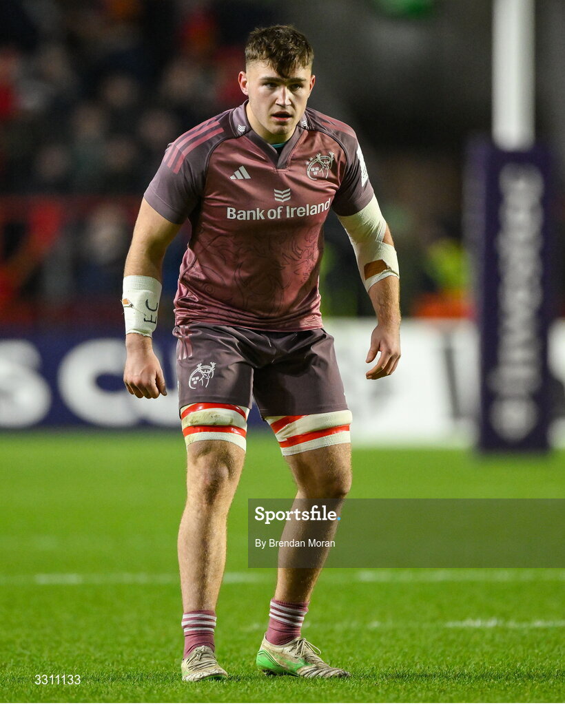 13 December 2025; Ruadhán Quinn of Munster during the Investec Champions Cup match between Munster and Gloucester at SuperValu Páirc Ui Chaoimh in Cork. Photo by Brendan Moran/Sportsfile