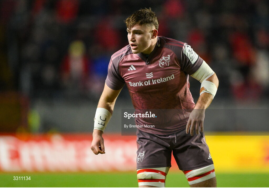 13 December 2025; Ruadhán Quinn of Munster during the Investec Champions Cup match between Munster and Gloucester at SuperValu Páirc Ui Chaoimh in Cork. Photo by Brendan Moran/Sportsfile