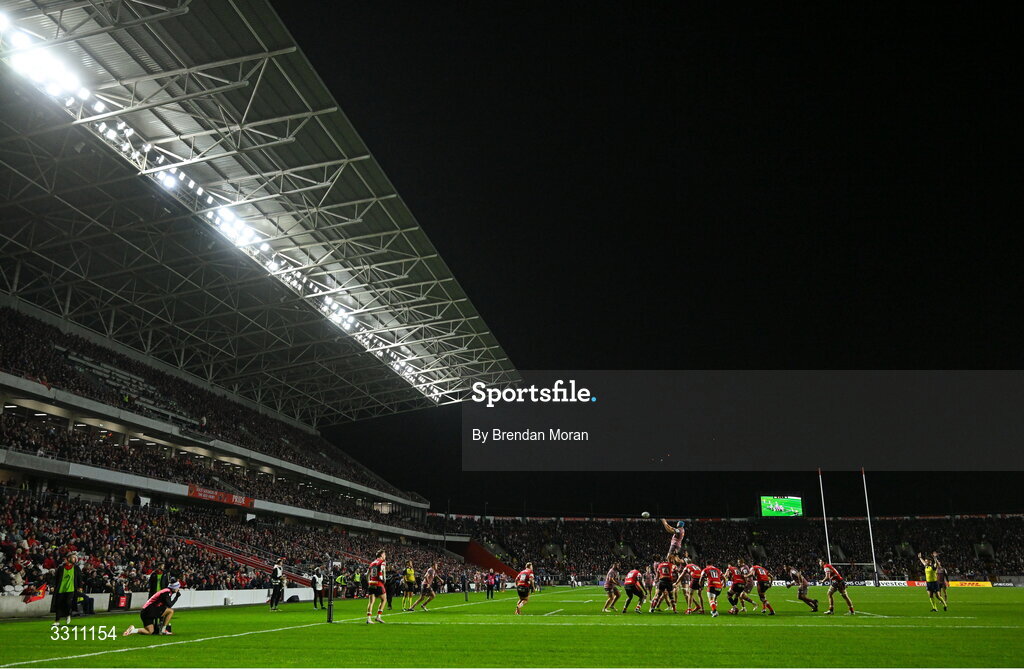 13 December 2025; A general view of a lineout during the Investec Champions Cup match between Munster and Gloucester at SuperValu Páirc Ui Chaoimh in Cork. Photo by Brendan Moran/Sportsfile