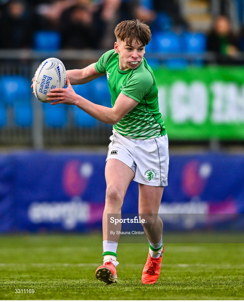 10 December 2025; Sean Fahey of Gonzaga College during the Bank of Ireland Leinster Rugby Schools Junior League Division 1A final match between Gonzaga College and Kilkenny College at Energia Park in Dublin. Photo by Shauna Clinton/Sportsfile