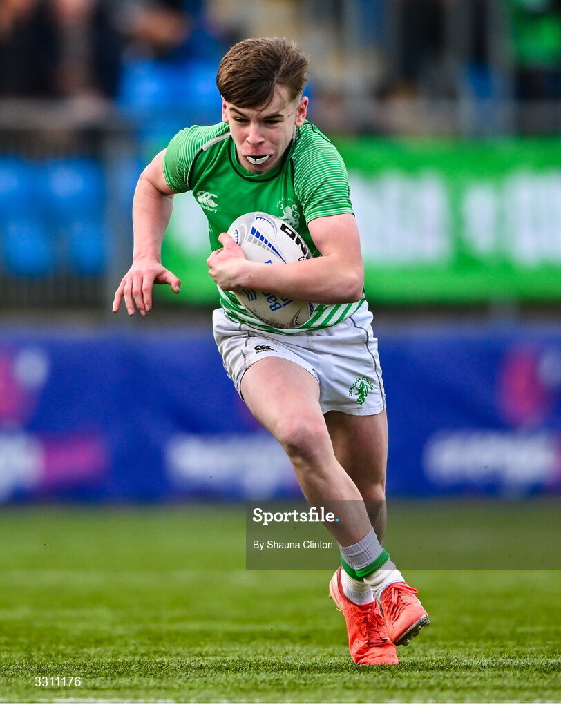 10 December 2025; Sean Fahey of Gonzaga College during the Bank of Ireland Leinster Rugby Schools Junior League Division 1A final match between Gonzaga College and Kilkenny College at Energia Park in Dublin. Photo by Shauna Clinton/Sportsfile