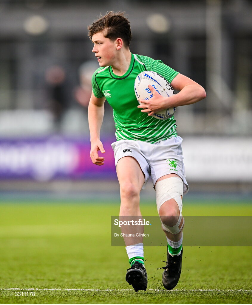 10 December 2025; Daniel Friel of Gonzaga College during the Bank of Ireland Leinster Rugby Schools Junior League Division 1A final match between Gonzaga College and Kilkenny College at Energia Park in Dublin. Photo by Shauna Clinton/Sportsfile