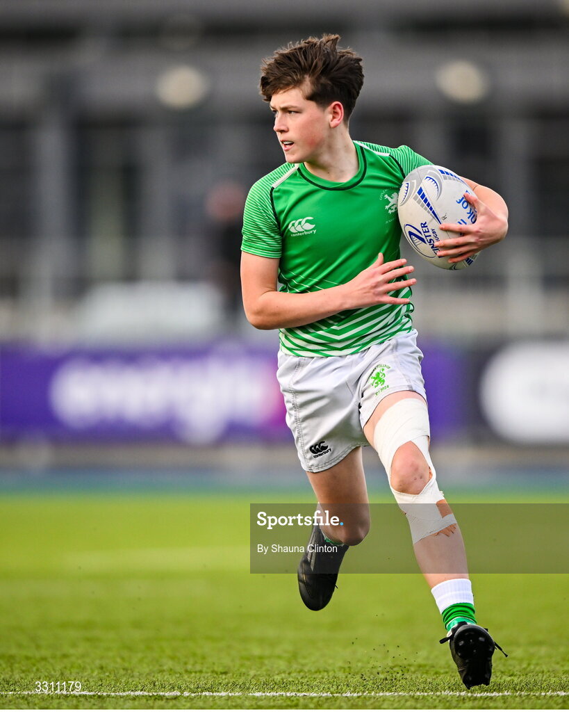 10 December 2025; Daniel Friel of Gonzaga College during the Bank of Ireland Leinster Rugby Schools Junior League Division 1A final match between Gonzaga College and Kilkenny College at Energia Park in Dublin. Photo by Shauna Clinton/Sportsfile