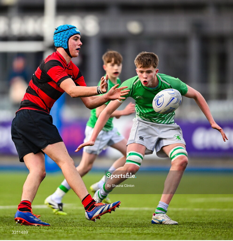 10 December 2025; Scott Powell of Kilkenny College during the Bank of Ireland Leinster Rugby Schools Junior League Division 1A final match between Gonzaga College and Kilkenny College at Energia Park in Dublin. Photo by Shauna Clinton/Sportsfile