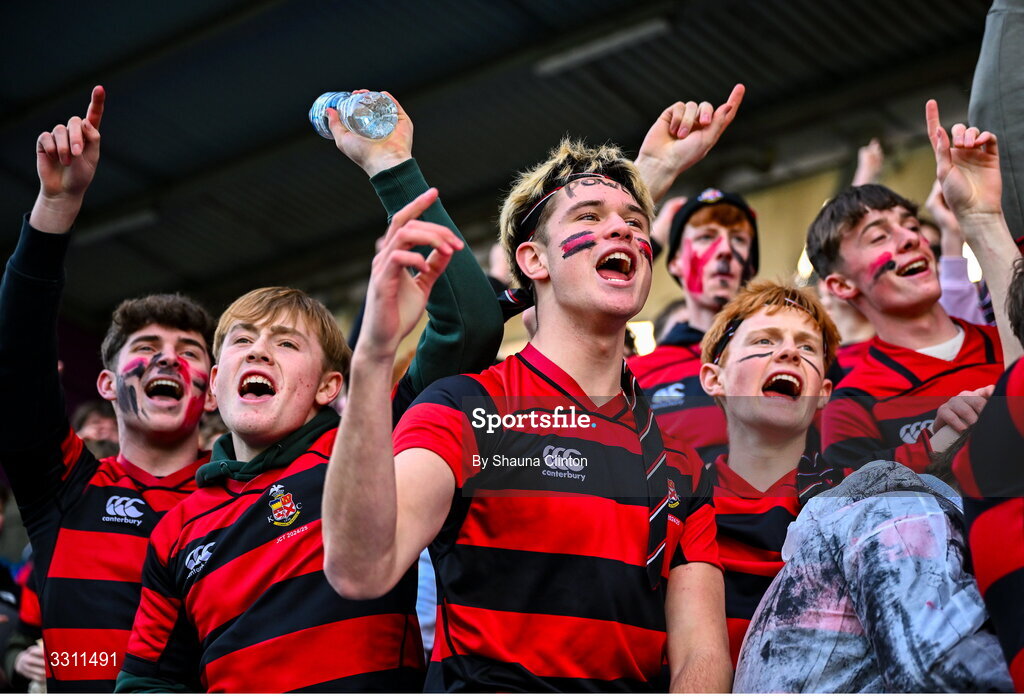 10 December 2025; Kilkenny College supporters during the Bank of Ireland Leinster Rugby Schools Junior League Division 1A final match between Gonzaga College and Kilkenny College at Energia Park in Dublin. Photo by Shauna Clinton/Sportsfile