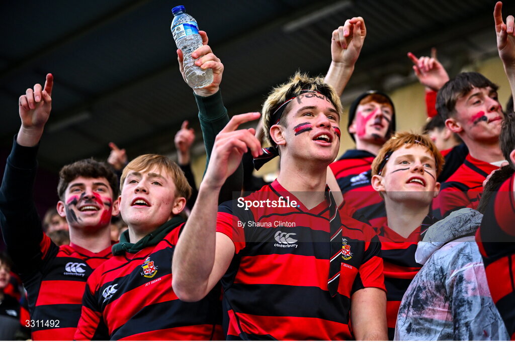 10 December 2025; Kilkenny College supporters during the Bank of Ireland Leinster Rugby Schools Junior League Division 1A final match between Gonzaga College and Kilkenny College at Energia Park in Dublin. Photo by Shauna Clinton/Sportsfile