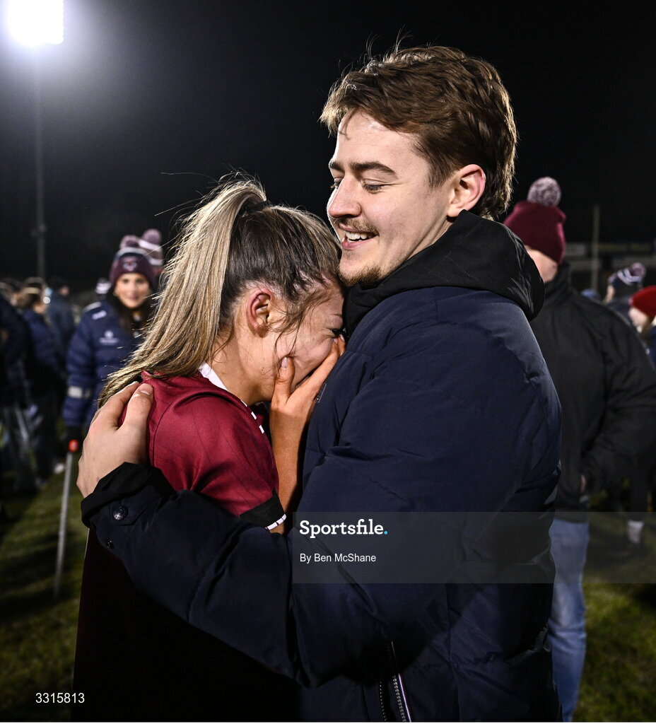 3 January 2026; Kayla Madden of Athenry celebrates with her partner Orin Burke after the AIB All-Ireland Camogie Senior Club Championship final replay match between Athenry of Galway and St Finbarr's of Cork at FBD Semple Stadium in Thurles, Tipperary. Photo by Ben McShane/Sportsfile