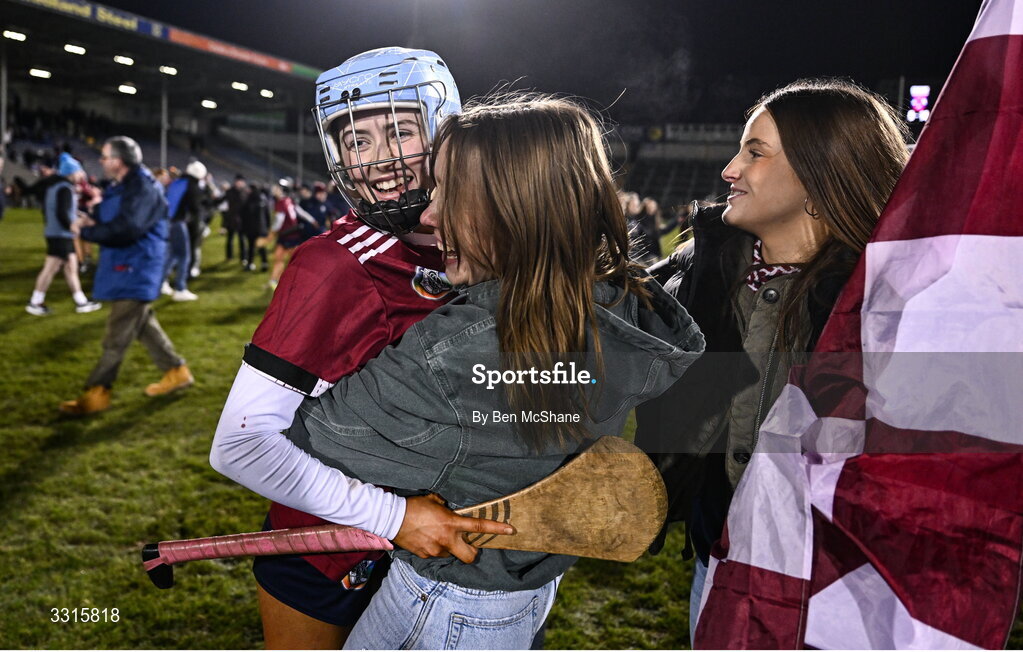 3 January 2026; Kerri O’Driscoll of Athenry celebrates with supporters after the AIB All-Ireland Camogie Senior Club Championship final replay match between Athenry of Galway and St Finbarr's of Cork at FBD Semple Stadium in Thurles, Tipperary. Photo by Ben McShane/Sportsfile