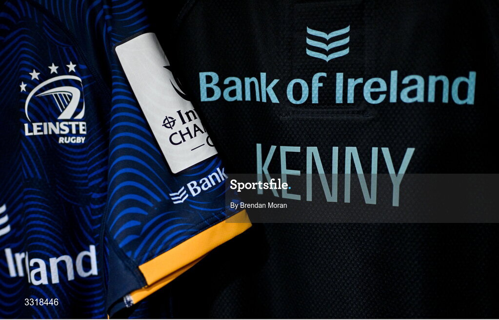 10 January 2026; The jersey of Joshua Kenny in the Leinster dressingroom before the Investec Champions Cup match between Leinster and La Rochelle at the Aviva Stadium in Dublin. Photo by Brendan Moran/Sportsfile