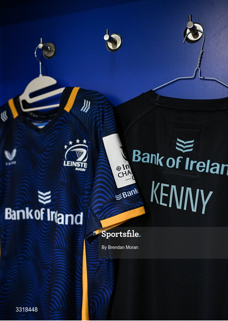 10 January 2026; The jersey of Joshua Kenny in the Leinster dressingroom before the Investec Champions Cup match between Leinster and La Rochelle at the Aviva Stadium in Dublin. Photo by Brendan Moran/Sportsfile