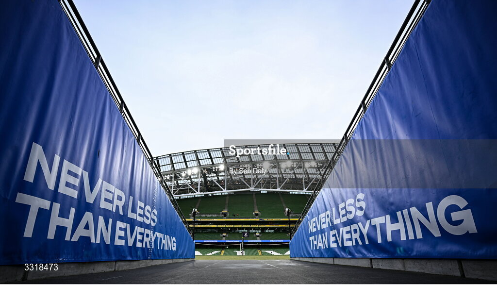 10 January 2026; A general view from the tunnel before the Investec Champions Cup match between Leinster and La Rochelle at the Aviva Stadium in Dublin. Photo by Seb Daly/Sportsfile