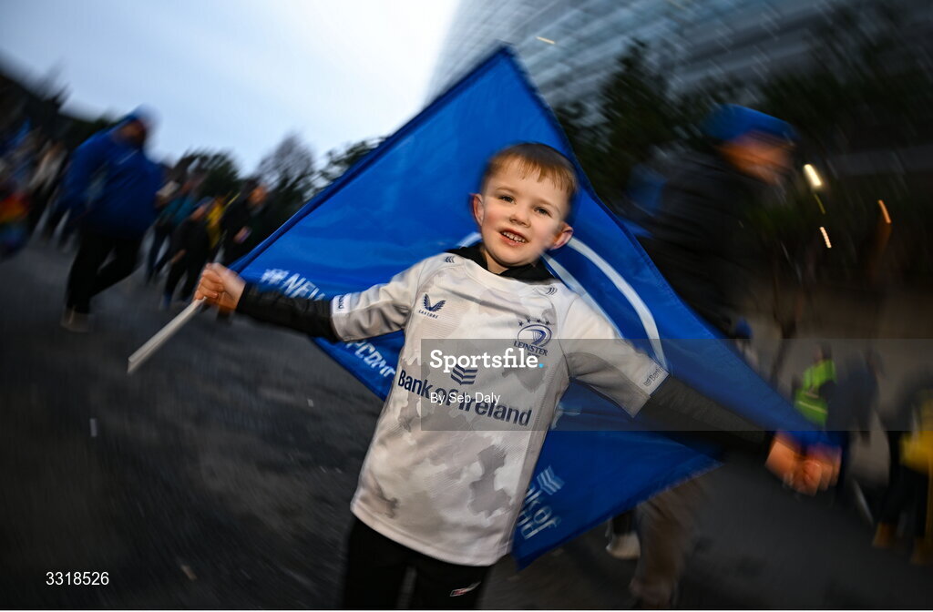 10 January 2026; Leinster supporters Cillian Ryan, age 6, from Foulkesmill, Wexford, before the Investec Champions Cup match between Leinster and La Rochelle at the Aviva Stadium in Dublin. Photo by Seb Daly/Sportsfile