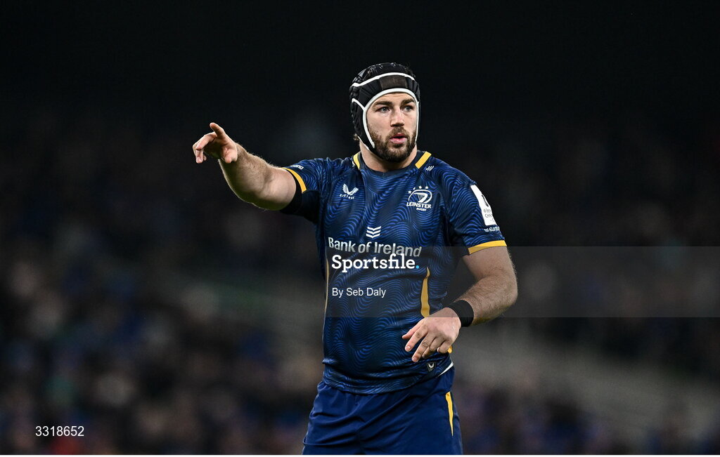 10 January 2026; Caelan Doris of Leinster during the Investec Champions Cup match between Leinster and La Rochelle at the Aviva Stadium in Dublin. Photo by Seb Daly/Sportsfile