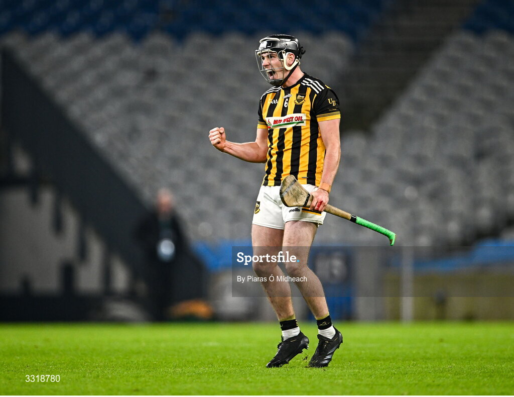 10 January 2026; Gavin Ryan of Upperchurch-Drombane celebrates after scoring the equalising point in second half injury-time, to send the match to extra-time, during the AIB GAA Hurling All-Ireland Intermediate Club Championship final match between Tooreen of Mayo and Upperchurch-Drombane of Tipperary at Croke Park in Dublin. Photo by Piaras Ó Mídheach/Sportsfile