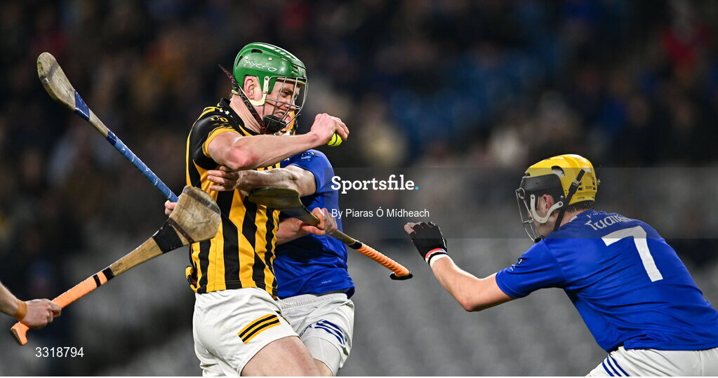 10 January 2026; Paul Shanahan of Upperchurch-Drombane in action against Stephen Coyne and David Kenny, 7, of Tooreen during the AIB GAA Hurling All-Ireland Intermediate Club Championship final match between Tooreen of Mayo and Upperchurch-Drombane of Tipperary at Croke Park in Dublin. Photo by Piaras Ó Mídheach/Sportsfile