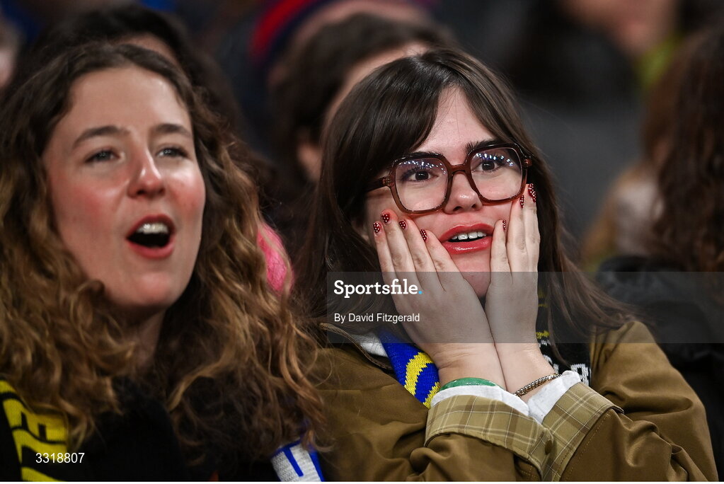 10 January 2026; Leinster supporters react during the Investec Champions Cup match between Leinster and La Rochelle at the Aviva Stadium in Dublin. Photo by David Fitzgerald/Sportsfile