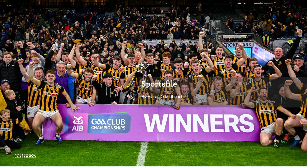 10 January 2026; Upperchurch-Drombane players and coaches celebrate with the cup after their side's victory in the AIB GAA Hurling All-Ireland Intermediate Club Championship final match between Tooreen of Mayo and Upperchurch-Drombane of Tipperary at Croke Park in Dublin. Photo by Piaras Ó Mídheach/Sportsfile