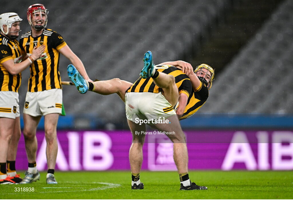 10 January 2026; Upperchurch-Drombane Gavin Ryan and Luke Shanahan, behind, celebrates after victory in the AIB GAA Hurling All-Ireland Intermediate Club Championship final match between Tooreen of Mayo and Upperchurch-Drombane of Tipperary at Croke Park in Dublin. Photo by Piaras Ó Mídheach/Sportsfile