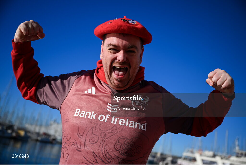 11 January 2026; Munster supporter Ben Leahy, from Cork, before the Investec Champions Cup match between RC Toulon and Munster at Stade Felix Mayol in Toulon, France. Photo by Shauna Clinton/Sportsfile