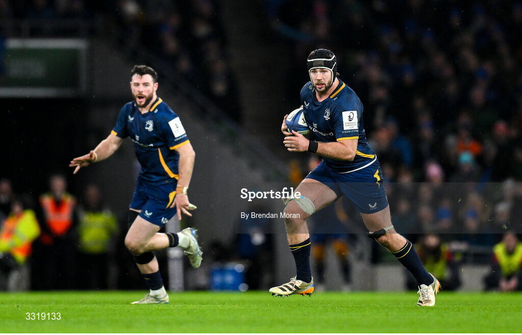 10 January 2026; Caelan Doris of Leinster during the Investec Champions Cup match between Leinster and La Rochelle at the Aviva Stadium in Dublin. Photo by Brendan Moran/Sportsfile