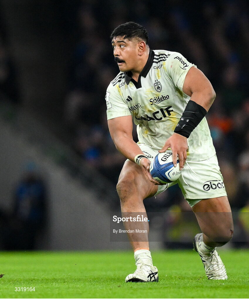 10 January 2026; Will Skelton of La Rochelle during the Investec Champions Cup match between Leinster and La Rochelle at the Aviva Stadium in Dublin. Photo by Brendan Moran/Sportsfile