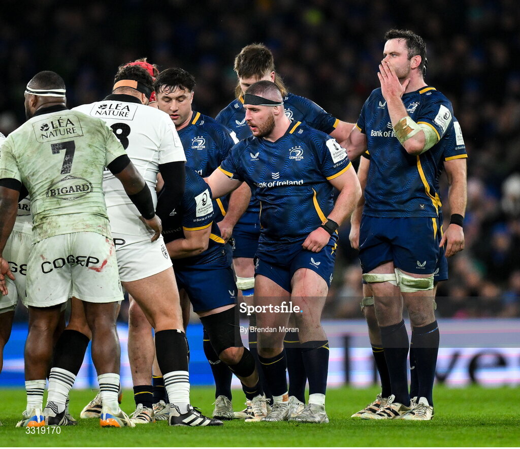 10 January 2026; Jerry Cahir of Leinster, centre, during the Investec Champions Cup match between Leinster and La Rochelle at the Aviva Stadium in Dublin. Photo by Brendan Moran/Sportsfile
