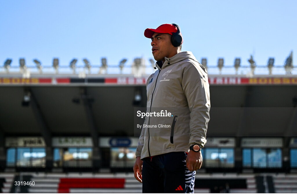 11 January 2026; Michael Ala'alatoa of Munster inspects the pitch before the Investec Champions Cup match between RC Toulon and Munster at Stade Felix Mayol in Toulon, France. Photo by Shauna Clinton/Sportsfile