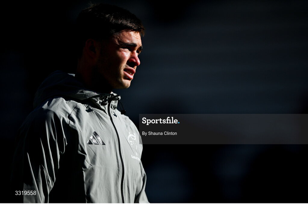 11 January 2026; Jack Crowley of Munster warms-up before the Investec Champions Cup match between RC Toulon and Munster at Stade Felix Mayol in Toulon, France. Photo by Shauna Clinton/Sportsfile