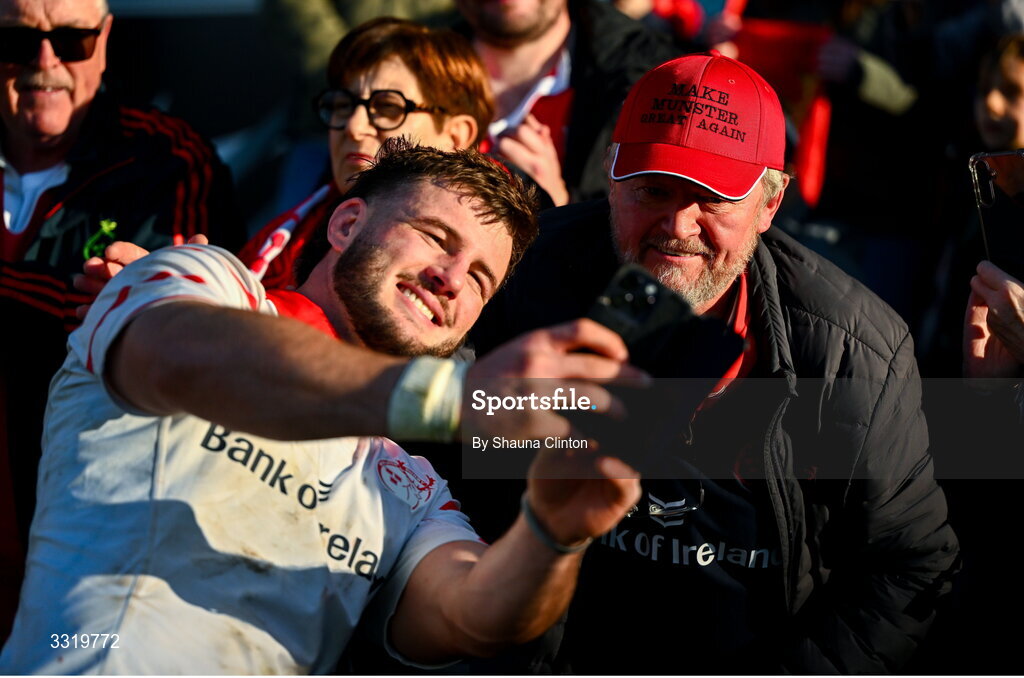 11 January 2026; Alex Nankivell of Munster with supporters after the Investec Champions Cup match between RC Toulon and Munster at Stade Felix Mayol in Toulon, France. Photo by Shauna Clinton/Sportsfile