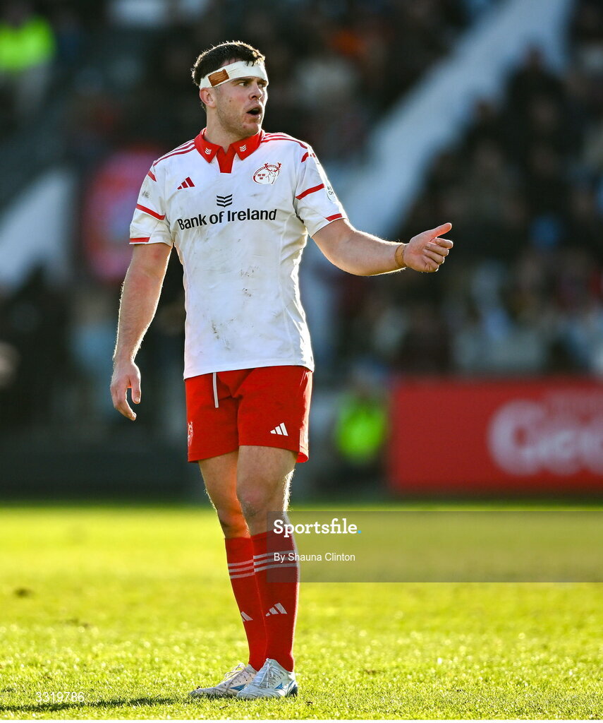 11 January 2026; Tom Farrell of Munster during the Investec Champions Cup match between RC Toulon and Munster at Stade Felix Mayol in Toulon, France. Photo by Shauna Clinton/Sportsfile