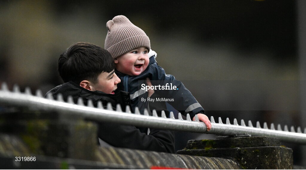 11 January 2026; Erins Isle GAA Club members Koa, 18 months and his brother Mason, 14 years, watch the Dioralyte Walsh Cup semi-final match between Dublin and Westmeath at Parnell Park in Dublin. Photo by Ray McManus/Sportsfile