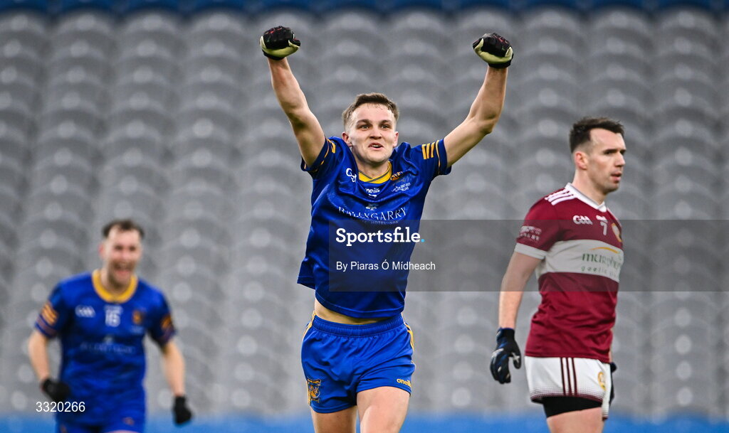 11 January 2026; Cathal Dunne of Ballymacelligott celebrates after his side's victory in the AIB GAA Football Junior Club Championship final match between Ballymacelligott of Kerry and Clogher Eire Óg of Tyrone at Croke Park in Dublin. Photo by Piaras Ó Mídheach/Sportsfile