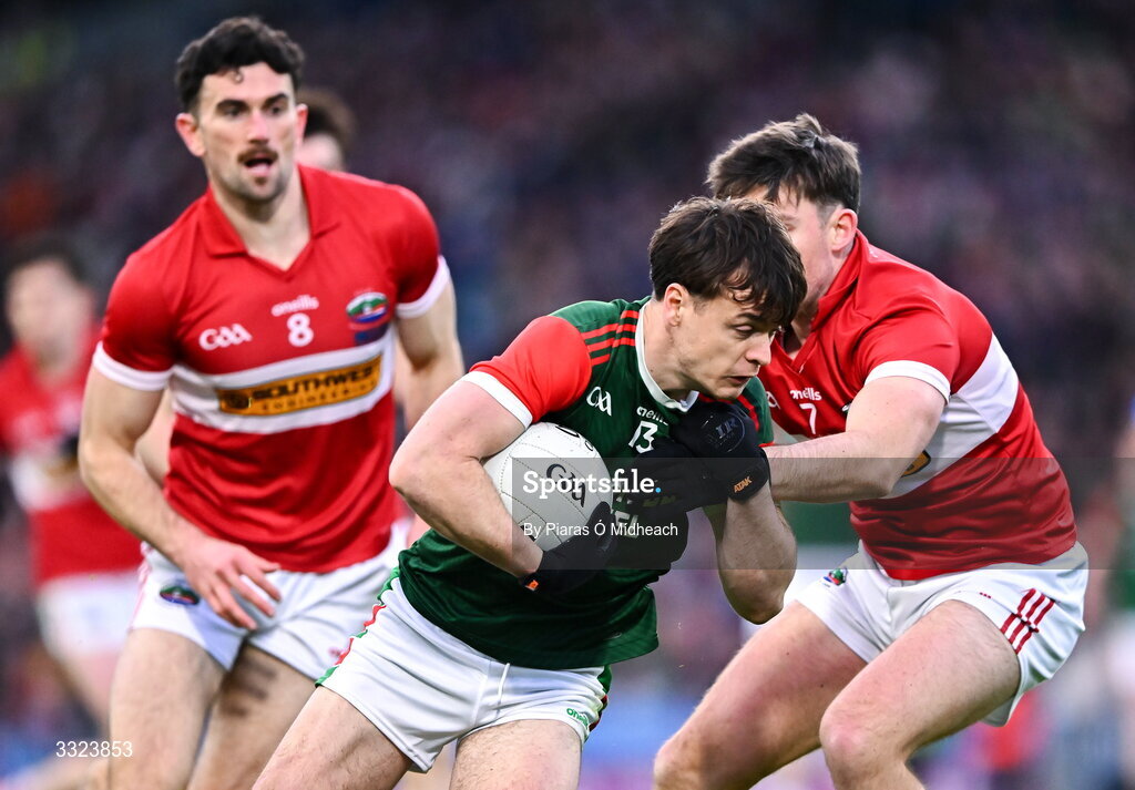 18 January 2026; Ben O'Carroll of St Brigid's in action against Patrick O'Connor of Dingle during the AIB GAA Football Senior Club Championship final match between Dingle of Kerry and St Brigid's of Roscommon at Croke Park in Dublin. Photo by Piaras Ó Mídheach/Sportsfile