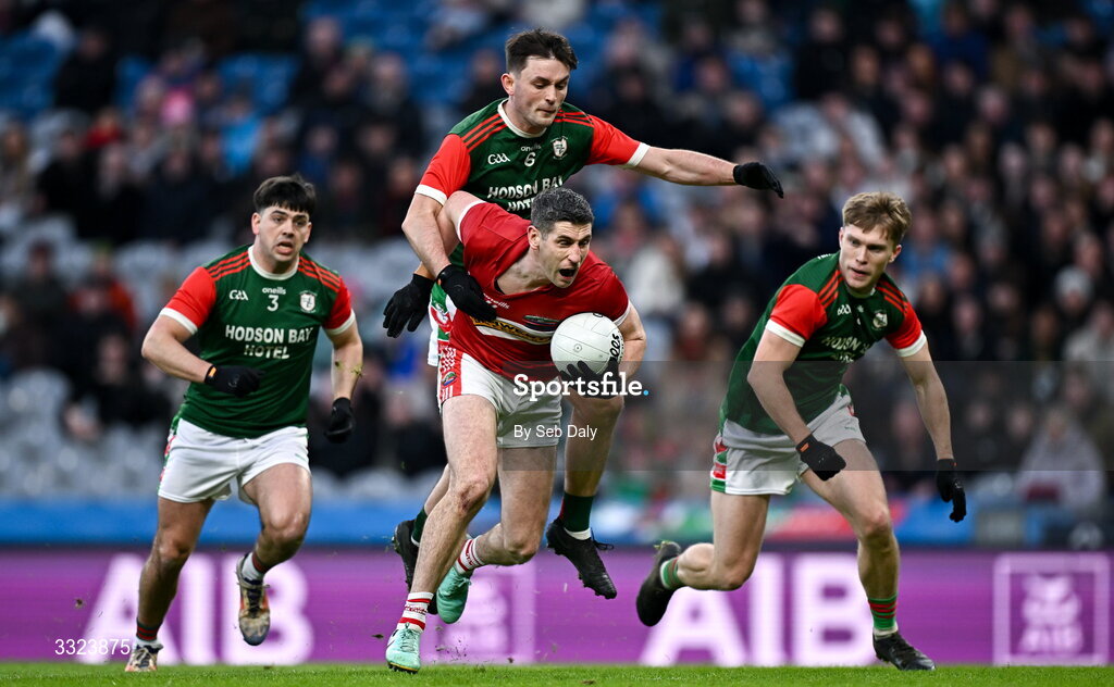 18 January 2026; Paul Geaney of Dingle in action against Brian Stack of St Brigid's during the AIB GAA Football Senior Club Championship final match between Dingle of Kerry and St Brigid's of Roscommon at Croke Park in Dublin. Photo by Seb Daly/Sportsfile