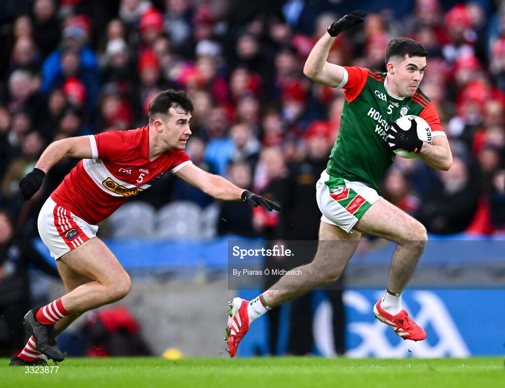 18 January 2026; Ruaidhrí Fallon of St Brigid's in action against Aidan O'Connor of Dingle during the AIB GAA Football Senior Club Championship final match between Dingle of Kerry and St Brigid's of Roscommon at Croke Park in Dublin. Photo by Piaras Ó Mídheach/Sportsfile